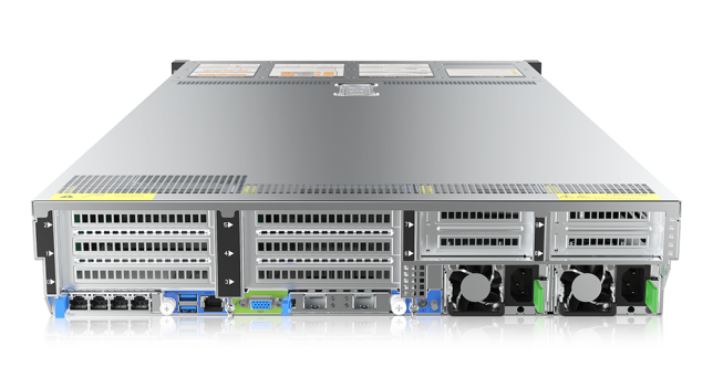 | PCIe扩展 | PCIe扩展形态 6x PCIe全高槽位、4x PCIe半高槽位,2x OCP 3.0槽位 PCIe扩展规格 Riser1/2: 1个全高 PCIe 5.0 x16+2个全高 PCIe 5.0 x8 2个全高 PCIe 5.0 x16 Riser3/4: 2个半高 PCIe 5.0 x8 1个半高 PCIe 5.0 x16 OCP: 2个OCP 3.0(PCIe 5.0 x8) |